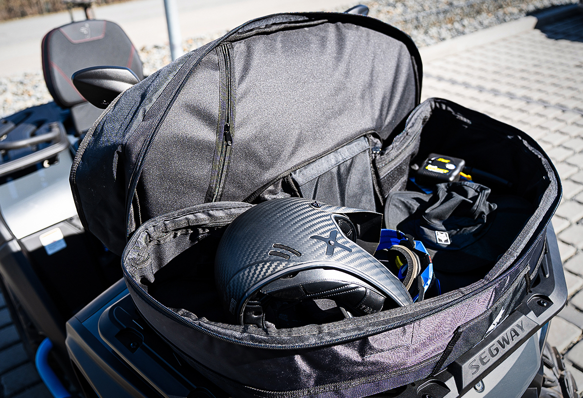 Dzięki torbie mocowanej na bagażniku możesz zwiększyć miejsce do przewożenia rzeczy potrzebnych podczas jazdy na quadzie. Jest wykonana z mocnego poliestrowego materiału, posiada zdejmowane/ regulowane pasy pozwalające na przymocowane dodatkowych przedmiotów na górze.
