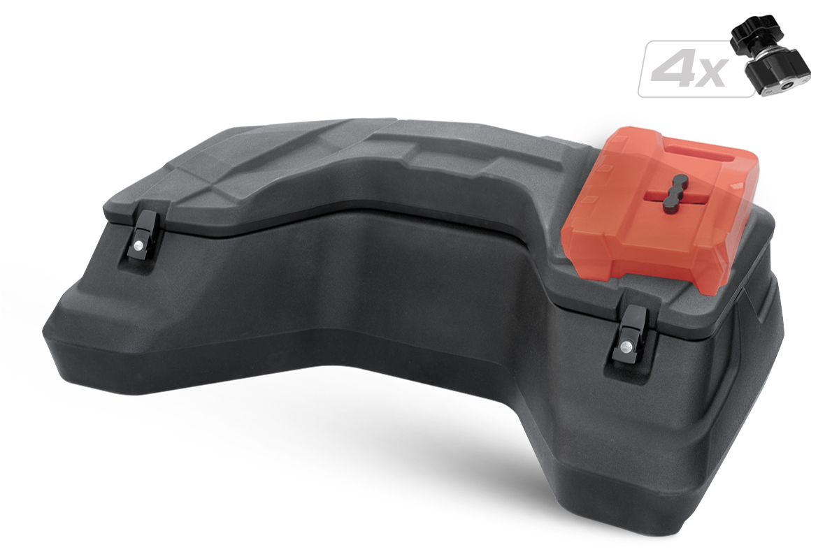 Kufer SHARK ATV o pojemności 96 litrów, wodoodporny, z dwoma zamkami i odblaskami. Idealny do szybkiego montażu na quady, zapewnia bezpieczne i wygodne przechowywanie.